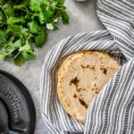Transfer cooked tortillas onto a plate wrapped with a clean kitchen towel to keep them warm as you cook the other tortillas
