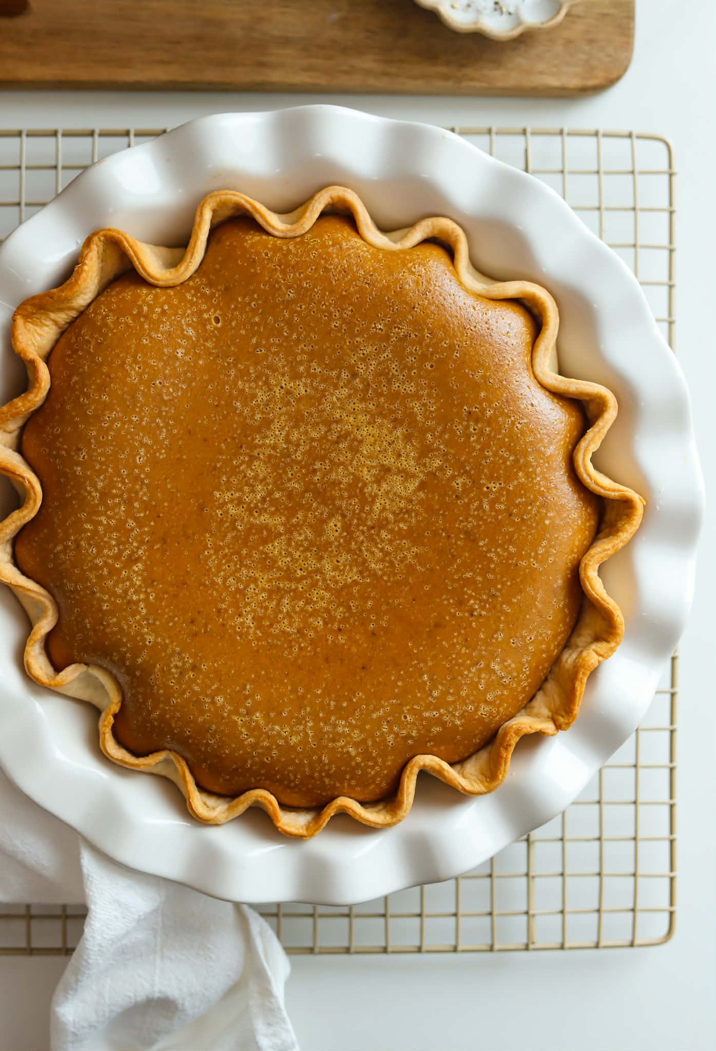 Transfer the pie dish onto a cooling rack and let the pie cool for at least 3 hours before serving or rest at room temperature for an hour and then chill if making in advance