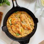 Transfer the chicken back onto a plate and whisk 1/2 cup of heavy cream and 1/2 cup of finely shredded parmesan into the couscous and let it sit over low heat for 1-2 minutes before serving