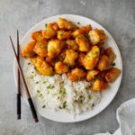 Once the butter has melted and the sauce is simmering, add the crisp chicken and toss to coat