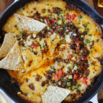 As soon as the cheese is all melted and bubbly, carefully transfer the skillet onto a heat proof surface, garnish and serve while hot
