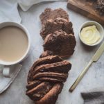 Carefully transfer the braided loaf into the prepared loaf pan and tuck the ends under