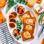 A simple, cute breakfast of baked eggs nestled into golden brown grilled toast.