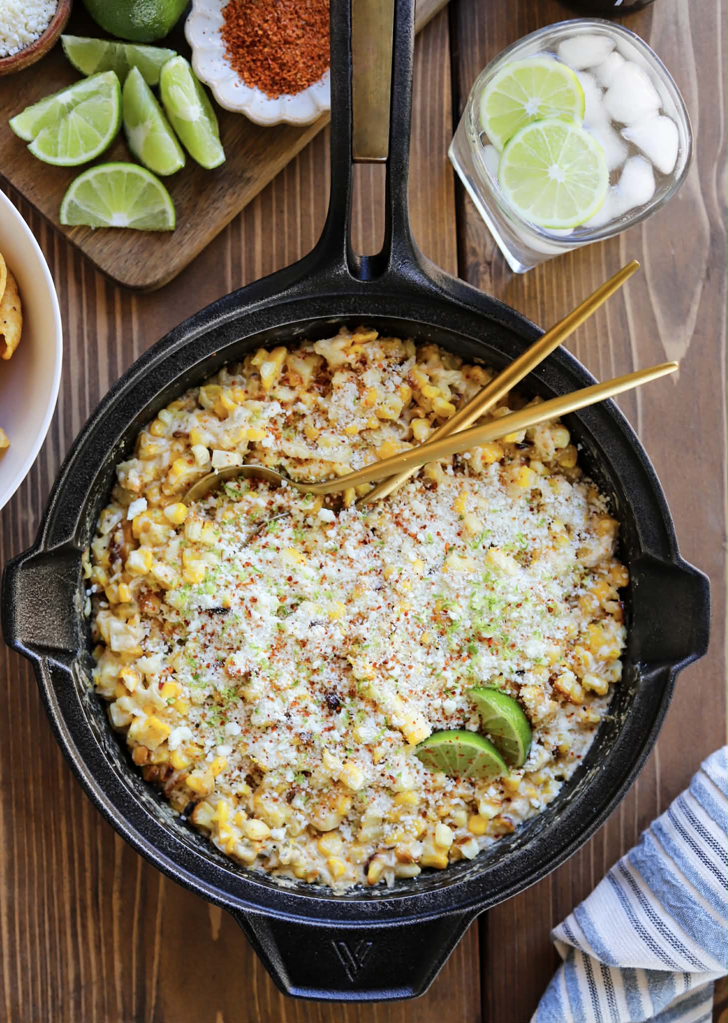 Transfer the skillet off of the heat and stir in 1 teaspoon of fresh lime zest, 2 tablespoons of fresh lime juice, 2 tablespoons of finely minced pickled jalapeños, 1/2 teaspoon of sea salt, 1/2 teaspoon of chili powder, 1/2 teaspoon of cumin and a pinch of black pepper