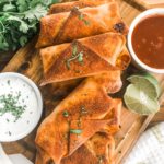 Place the rolled enchilada egg rolls onto a parchment lined baking sheet