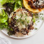 Generously seasoned burgers topped with caramelized onions and melted gruyere.
