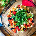 A beautiful salsa made with a flavorful combination of fruit, citrus juice and fresh mint.