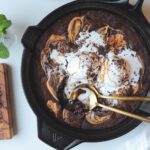 Transfer the skillet onto a heat proof surface and let it sit for 5-10 minutes before serving with vanilla ice cream