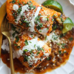 Thinly sliced chicken breasts stuffed with cheese and a garlicky black bean mixture are rolled up and smothered in enchilada sauce. Mexican comfort food perfection.