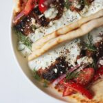 Pitas filled with souvlaki, fresh veggies, creamy tzatziki and feta.