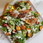 Transfer the cooked chicken onto a cutting board to rest while you prepare the salad ingredientsĀ