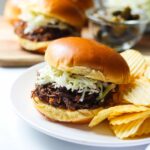Tender shredded beef made in the oven, on the stovetop, in a crockpot or pressure cooker and tossed in a sweet and tangy honey balsamic sauce.