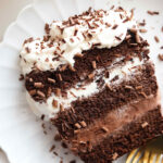 Top the cake with your whipped cream and garnished with shaved chocolate or sprinkles or both!