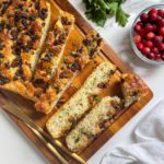 Once the bottom of the focaccia is golden brown and crispy, transfer the baking dish onto a cooling rack for 5 minutes and then transfer the focaccia directly onto a cooling rack to cool fully before slicing