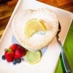 Bake at 350 degrees for approximately 28 minutes. The soufflé should rise tall and the top should be crusted and slightly golden. Avoid opening the oven door until the soufflé is ready to be removed from the oven