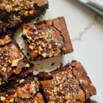 Optionally, top the warm brownies with chopped chocolate and finely chopped almonds