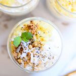 A delicious parfait made with creamy coconut chia pudding and a delicious pineapple yogurt.