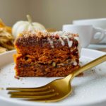 Pour the thick pumpkin batter into the prepared baking dish and then top with the pumpkin spice crumble topping (or layer the ingredients, see instructions above)