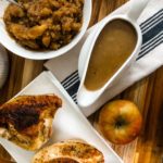 Serve the roast chicken and apple cider gravy warm with green beans and spiced apple sauce (optional)