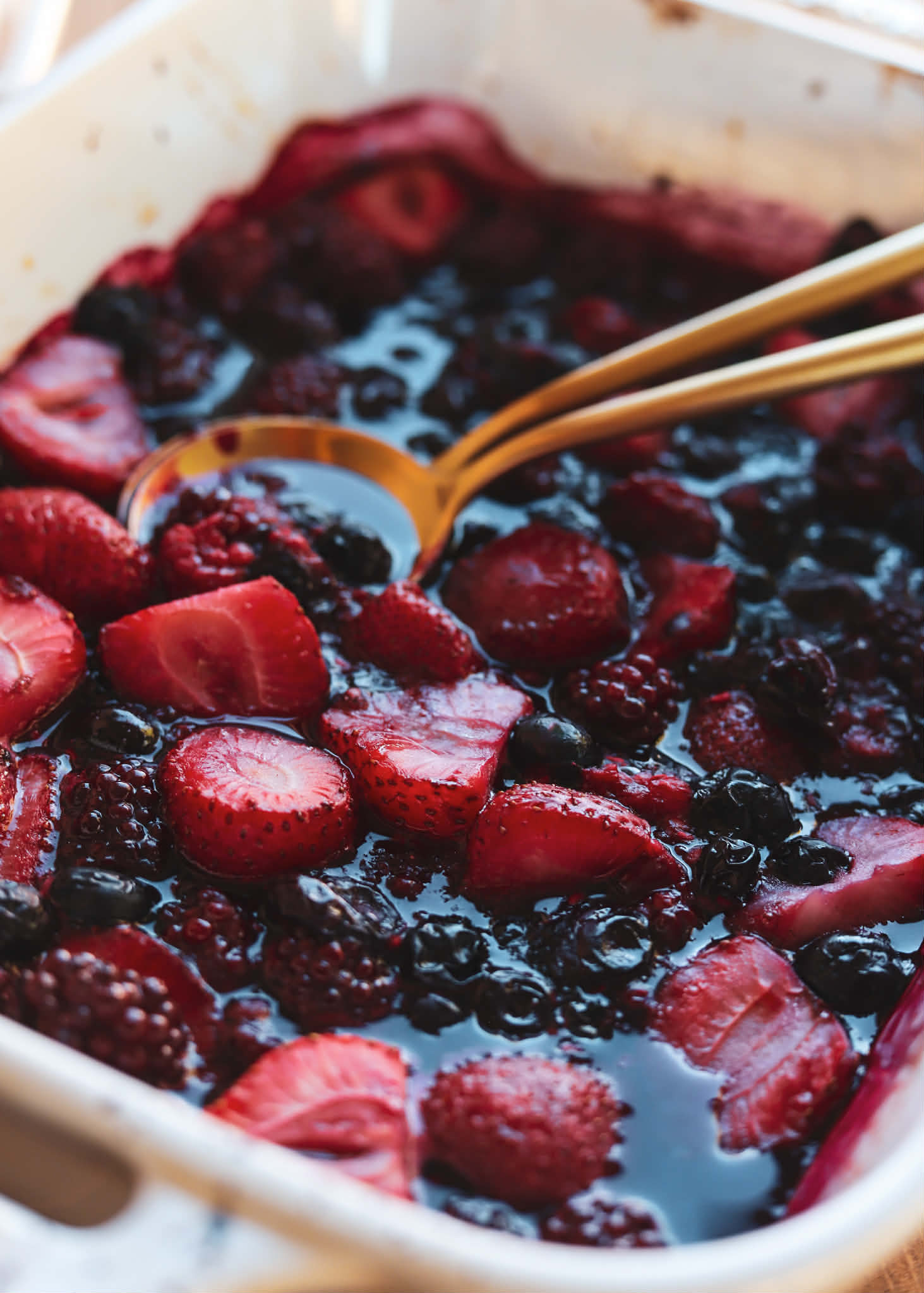 Roasting berries with a little sugar and citrus brings out the very best in them! They are perfect over yogurt, granola or even a slice of cake!