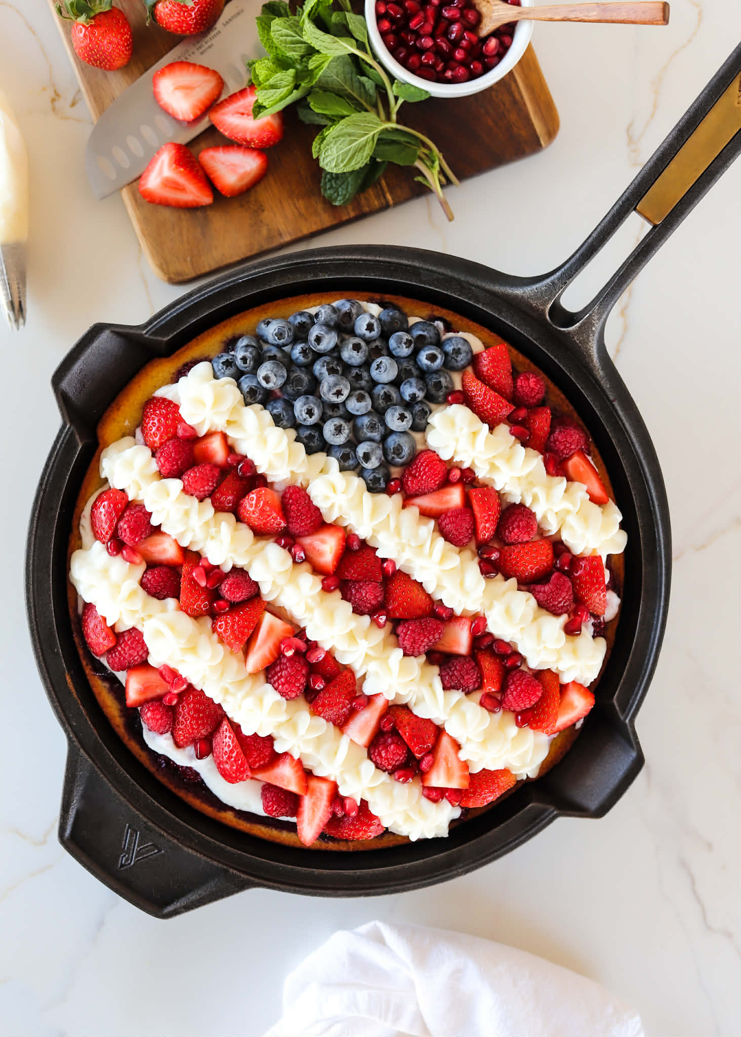 Grease and line a 12” skillet, 9”x13” baking dish or two 8” cake pans with parchment paper
