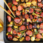 Optionally, you can roasted the smoked sausage separately on a small baking sheet to give it better caramelization on its own