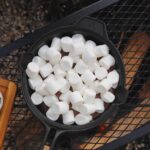 As soon as the chocolate begins to melt, spread the marshmallows over the entire skillet