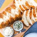 Bake at 350 degrees for 20-30 minutes or until the loaf is deeply golden brown and the internal temperature reaches 200 degrees