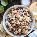 A bright, flavorful chicken salad with southwestern vibes. Leftover or rotisserie chicken, black beans, sweet corn, peppers, jalapeños, cilantro and cheese tossed with a light, citrusy greek yogurt dressing that you will love!