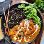 As soon as the pumpkin is fork tender, add it into the curry along with 1/4 cup of finely chopped fresh cilantro and toss to combine