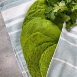 Working with one portion at a time, place the dough into a plastic lined tortilla press or between two sheets of non-stick parchment paper (be sure to keep the other portions of dough covered with plastic)