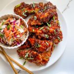 Combine 1/2 cup of ketsup, 1/3 cup of honey, 1/4 cup of soy sauce, 1/2 cup of hoisin, 1 tablespoon of freshly squeezed lime juice, 3 cloves of crushed garlic, 1 teaspoon of sambal oelek and 1 teaspoon of cornstarch in a small bowl and set aside