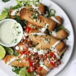 Place the taquitos seam side down onto a parchment lined baking sheet and press down slightly to secure