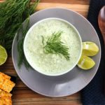 A cool, refreshing chilled cucumber soup with Greek yogurt and fresh herbs.