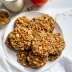 In a separate bowl, combine 1 1/2 cups of all purpose flour, 1 1/2 cups of old fashioned oats, 1 teaspoon of ground cinnamon, 1/2 teaspoon of apple pie spice, 1/2 teaspoon of salt and 1/2 teaspoon of baking soda and then add to the butter and egg mixture and mix until just combined