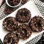 Allow the garnished doughnuts to sit on the cooling rack for about 15 minutes so the chocolate glaze can set up