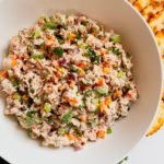 Crunchy veggies and a light, tangy, creamy dressing transforms canned tuna into something delicious.