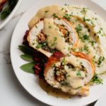 Place the roll in a deep baking dish and roast for 60-75 minutes brushing the roll with melted butter every 20 minutes or so