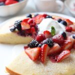 Transfer the cake pans onto a heat proof surface and let the cakes cool for about 10 minutes before transferring them out of the pans and onto a serving plate