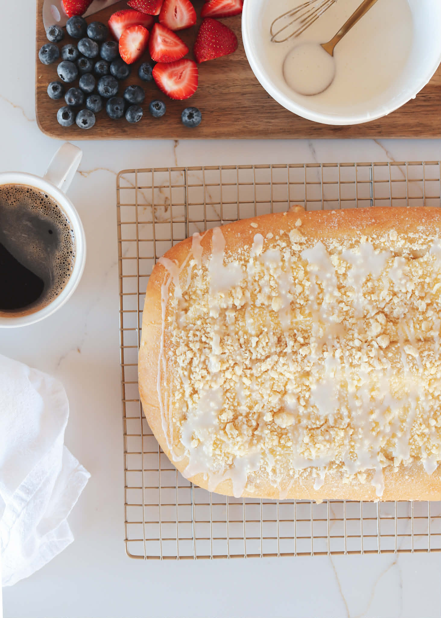 A chewy, creamy, perfectly sweet danish with cream cheese filling and a crumbly streusel topping. The ultimate pairing for any cup of coffee.