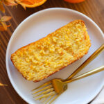 Transfer the batter into the prepped loaf pan and bake in a 350 degree oven for about an hour or until a toothpick will come out of the center of the cake clean and it feels set to a light touch (if the cake wobbles in the middle, looks wet or feels soft in the center, let it bake longer or it will collapse as it cools)